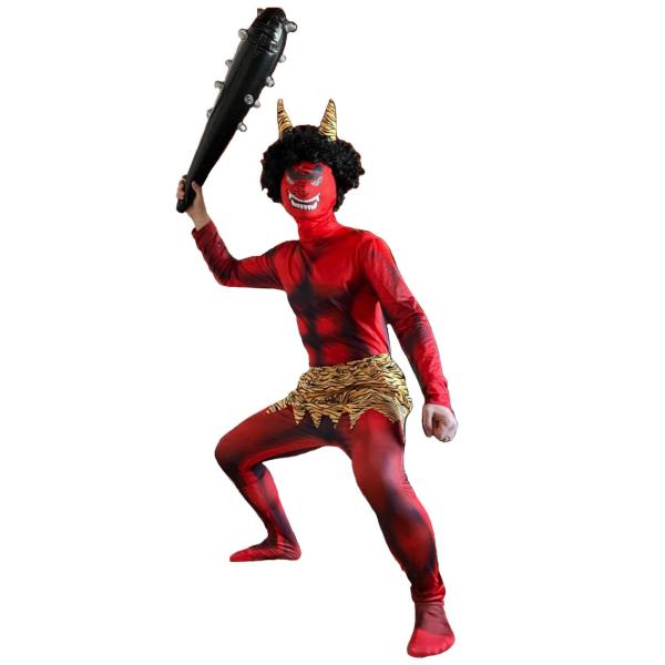 【鬼に必須アイテム棍棒がセット】筋肉ムキムキ全身タイツに怒りの鬼顔マスクで襲いかかる棍棒がセットなので鬼退治に豆を撒かれる事必死。