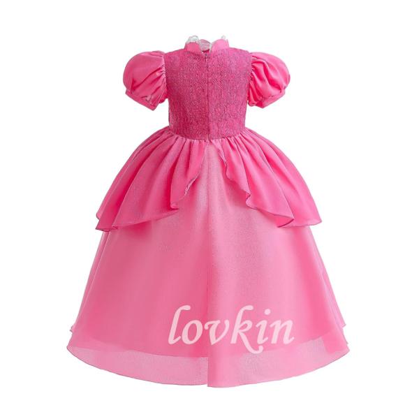 【ピーチ姫風ドレス】「スーパーマリオブラザーズ」からインスパイアを受けて魅力的な子供用スカートをご紹介します。コットンとレースのチュールでできたドレスは、鮮やかなバラ色を基調としており、ピーチ姫の魅力を完璧に再現しています。
