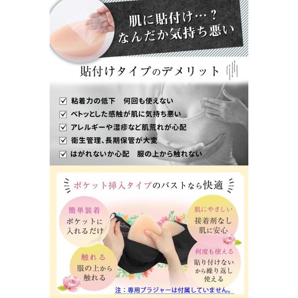 【トップ女装レイヤーたちがこぞって愛用しています】バストは貼り付けタイプではありませんので、粘着力の低下による浮き、接着剤による皮膚のかぶれ等の心配がありません。