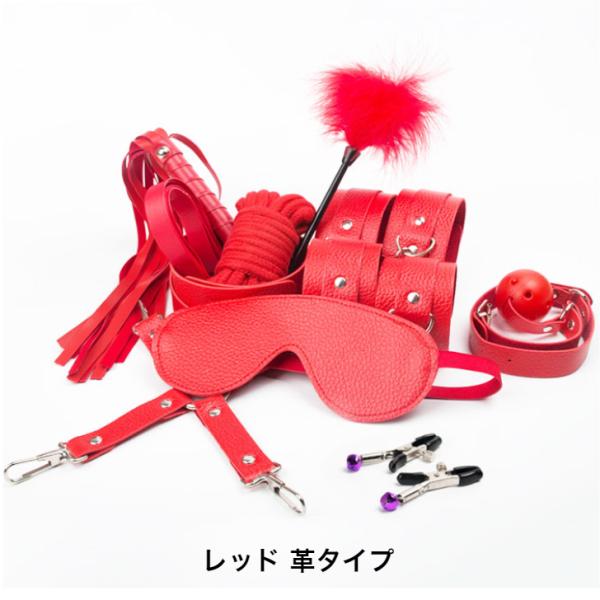 鞭、アイマスク、首輪、口枷、手錠、足錠、ロープ、クリップ、十字型枷、くすぐり羽根 10点