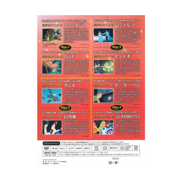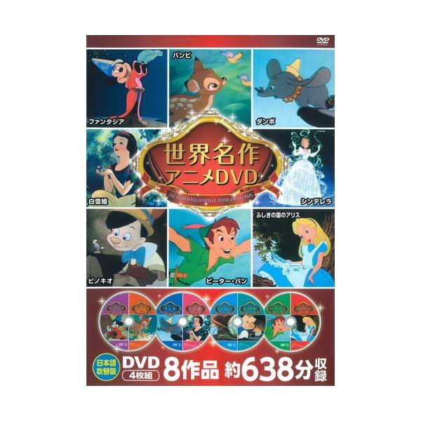 新品 ディズニー世界名作アニメDVDセット 4枚組8作品 / ミッキー バンビ ダンボ 白雪姫 不思議の国のアリス