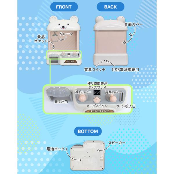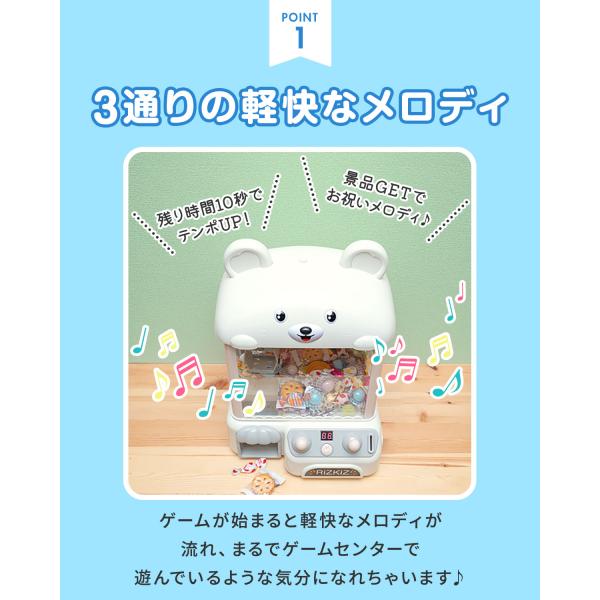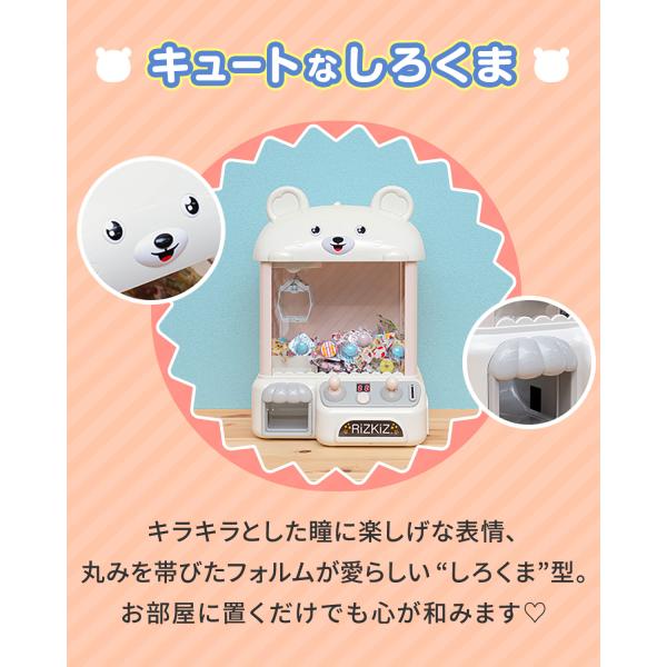 クレーンゲーム RiZKiZ おもちゃ 本体 大きい しろくまデザイン コイン付き 音が鳴る クレーン UFOクレーン キャッチャー USB給電/乾電池式 1年保証 送料無料