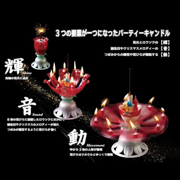 「ハッピーバースデイ」の曲が流れながら花弁がくるくる回ります。