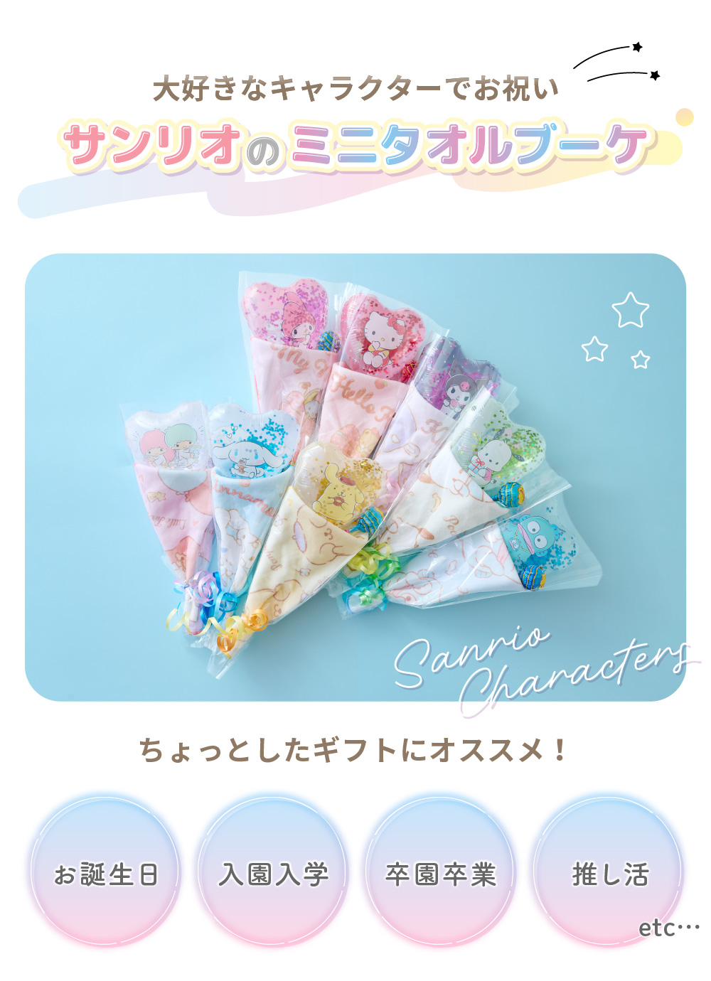 卒園 ハンカチ バルーン ブーケ 卒業 誕生日 お祝い プレゼント ギフト サンリオミニタオルブーケ チュッパチャプス付き gift regalo