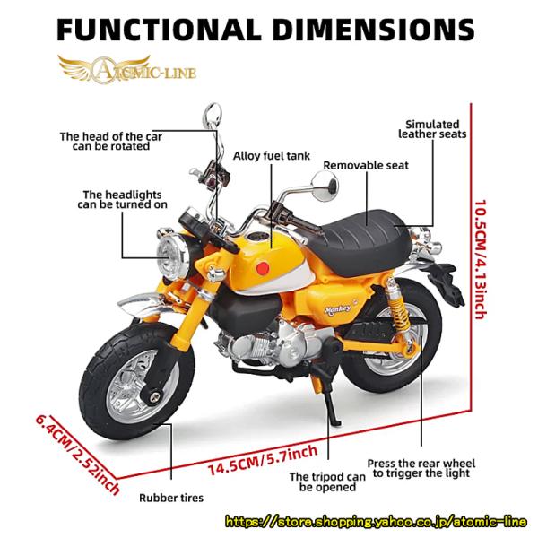 HONDA モンキー 125 ミニカー 1/12 ライト点灯 エンジンサウンド 合金モデル 模型 ジオラマ