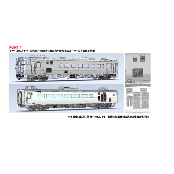 ●キハ182形、スハネフ14形もTNカプラー標準装備、またキハ182形には新規のトイレタンクとステップパーツを装着
