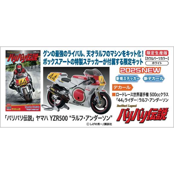 在庫状況:在庫あり/2025年10月 発売/※画像はイメージです。実際の商品とは異なる場合がございます。ハセガワ 1/12 (バリバリ伝説) ヤマハ YZR500 “ラルフ・アンダーソン”です。