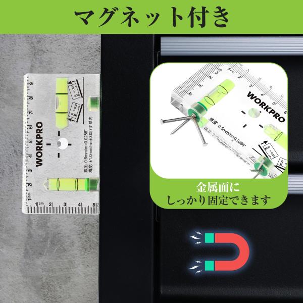 WORKPRO ミニレベル ミニ水平器 スイッチボックスケガキレベル クリスタルレベル 水準器 アクリルチューブ バブルレベル 6面測定 マグネット付
