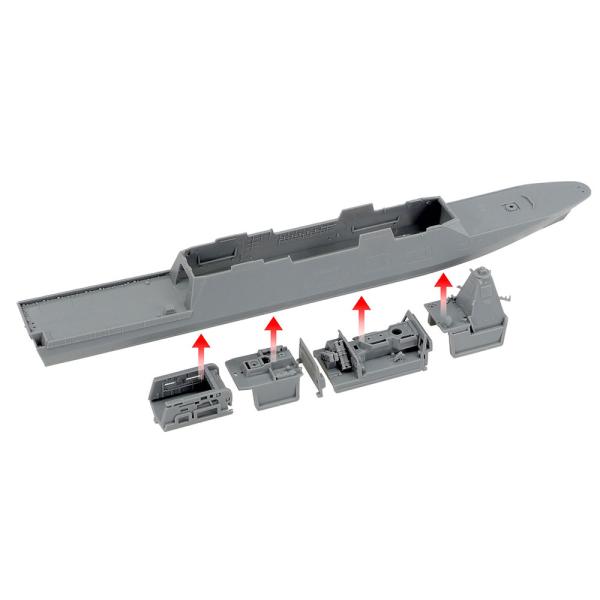 2022年4月に就役した、「もがみ型護衛艦」の1番艦が「もがみ」です。ステルス性を高めるため、船体や艦橋などは傾斜した平面で構成。航空甲板下には機雷除去用の装備を搭載し、護衛艦として初めて対機雷戦能力を獲得しました。同型艦は12隻が建造される予定で、掃海隊群や護衛艦隊に対して配備が進行中。島しょ部防衛に大きな力を発揮することが期待されています。【 模型要目 】海上自衛隊の護衛艦、FFM-1 もがみのプラスチックモデル組み立てキットです。★1/700スケール、全長190mm、全幅23mm。★ステルス性を備えた独特なスタイルをリアルに再現。甲板構造物なども精密にモデル化しました。★ホイップアンテナは直径0.4mmでパーツ化。★ヘリ格納庫のシャッターは開閉選択式。★主砲はポリキャップにより旋回でき、砲身も上下に可動します。★スライドマークは6番艦までの艦番号と艦名を用意。
