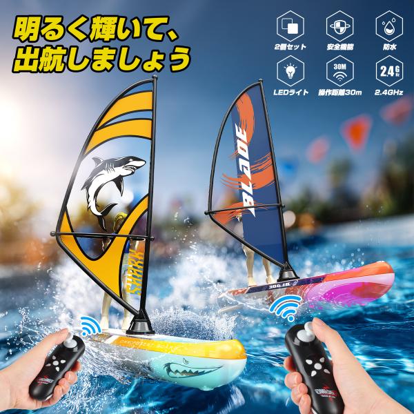ラジコン 船 ラジコンボート 子供向け 2台セット 防水 RC リモコンボート おもちゃ 水センサー LEDライト 操作距離30m 2.4Ghz 日本国内認証済み DE123