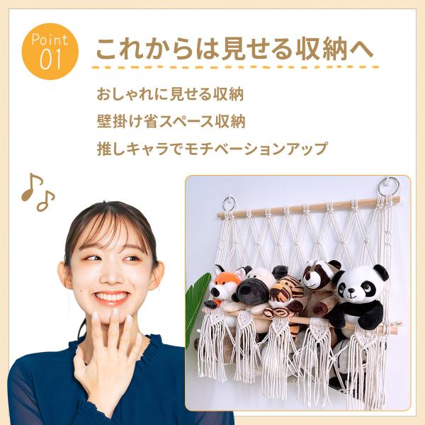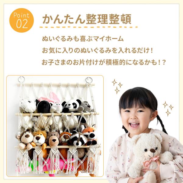 ・お部屋をすっきりと整理しながら、ぬいぐるみを美しくディスプレイできるぬいぐるみハンモックで、おしゃれな空間を演出します。