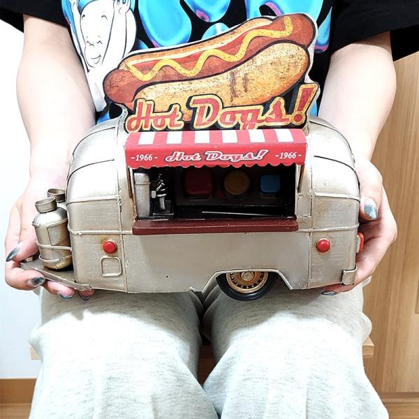 ビンテージカー ホットドッグ トレーラー 車 オブジェ ブリキ 置物 ポップ ヴィンテージ アメリカン 雑貨 HOT DOG アンティーク