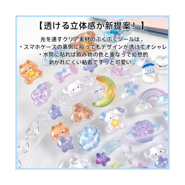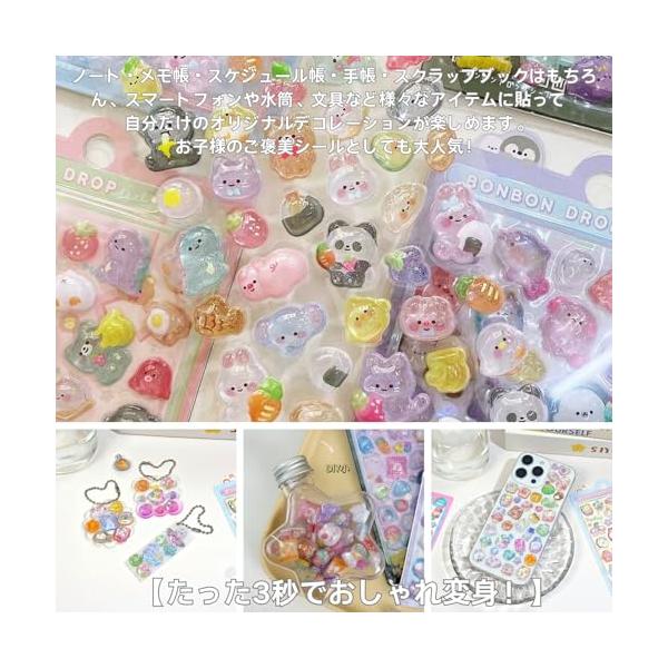 ぷくぷくシール 6枚セット 3Dシール 立体ステッカー 可愛い ご褒美 防水 貼り替え可能 女の子 キッズ 手帳用 DIY 携帯電話飾り 贈り物 手芸用品