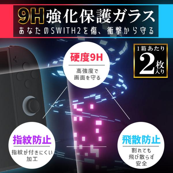 Switch2用 9H 強化ガラスフィルム 1箱2枚入り 選