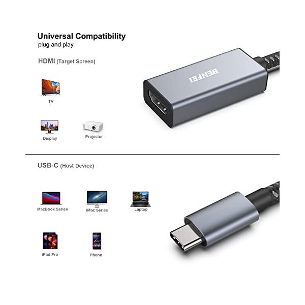 BENFEI USB C - HDMI 変換アダプタ 4K USB Type-C HDMI アダプタ [Thunderbolt 3 / 4] 互
