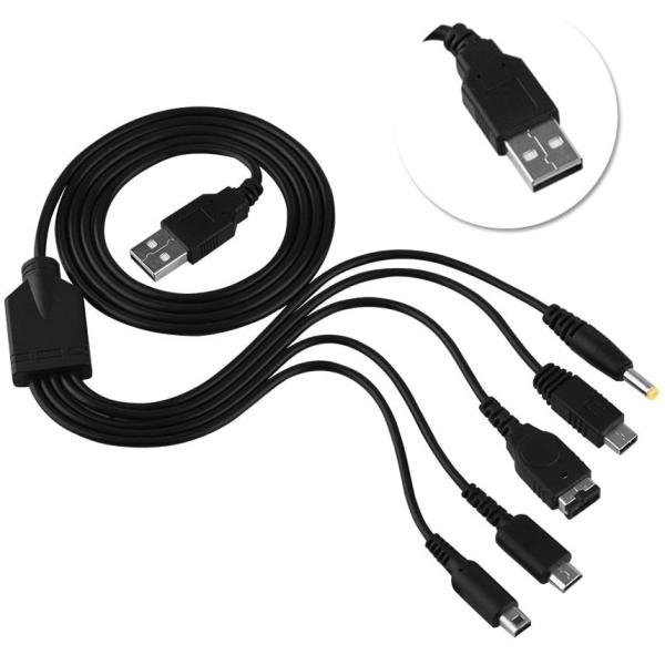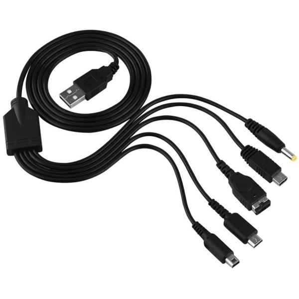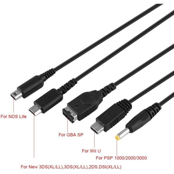 【5in1充電】Wii U 3DS PSP GBA SP DS Lite 2DS 急速充電 高耐久 断線防止 USBケーブル 充電器 1.2m
