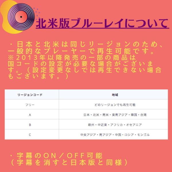 ブルーレイとDVDはどちらも【リージョンフリープレイヤー】もしくは【リージョン1に変更できるプレイヤー】でのみ再生可能です。