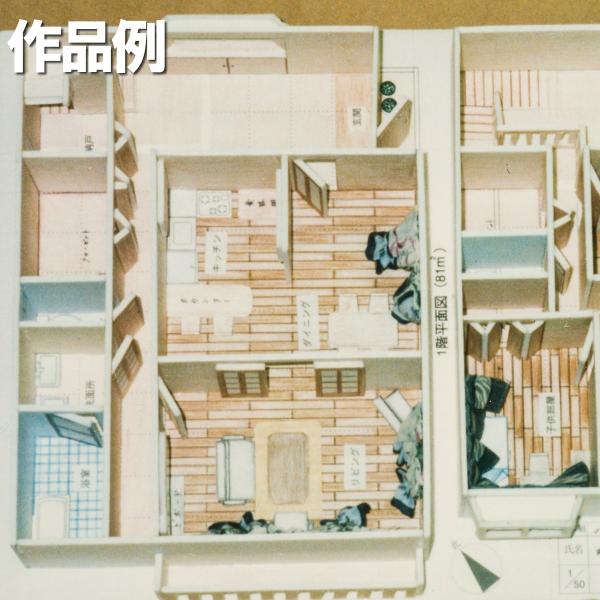 セット内容:「住居の設計(A3判コンセプトシート)」、部屋名・開口部のシール×1、模型の土台(スチレンボード:約254×363mm×1、外壁材×1、間仕切材×1、間仕切材&家具×1枚、説明書