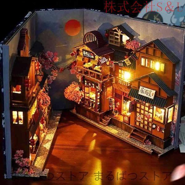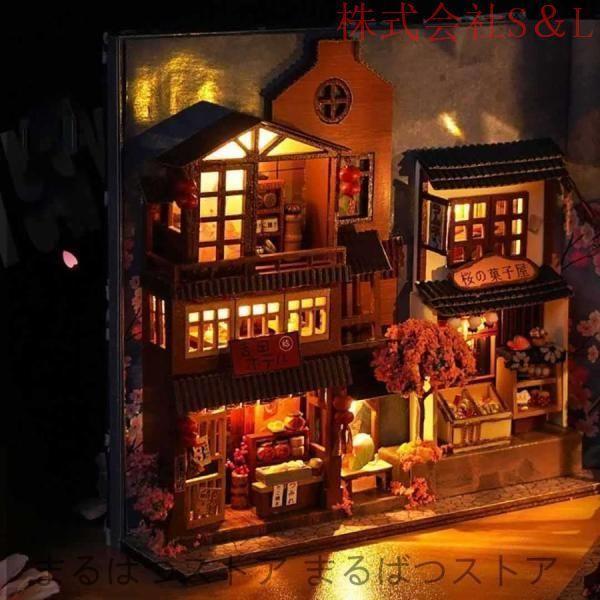 櫻花子港 日本の街並み 置物 ミニチュア ドールハウス ジオラマ 建築模型 DIY 本棚 中華街 棚 ブックエンド 秘密 シークレット キット アート