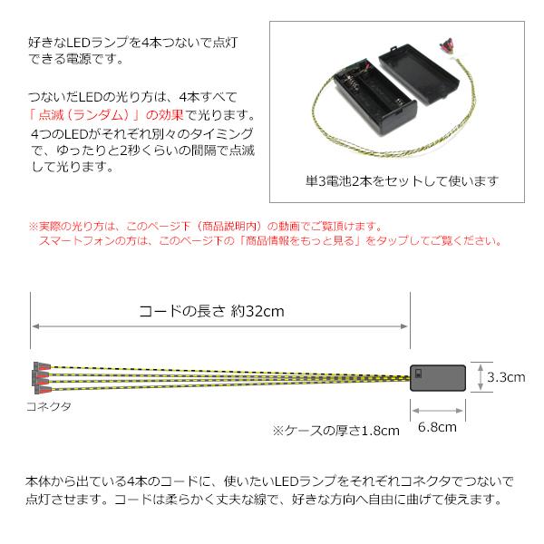 つないだLEDランプは4本すべて「点滅(2秒くらいの間隔でゆったりと点滅)」で光ります。