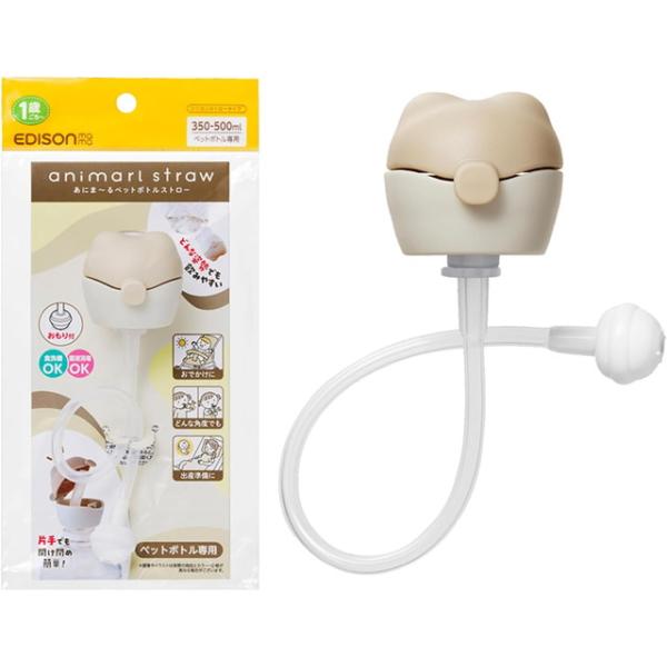 あにま〜るペットボトルストロー モカ (どんな姿勢でも飲みやすいおもり付き 1歳ごろ〜 食洗機OK) 定形外郵便送料無料