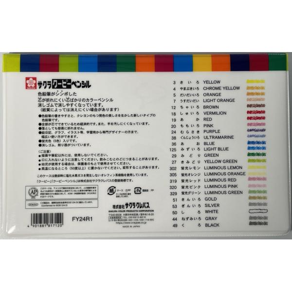 クレヨン■サクラクレパス クーピーペンシル 24色 金 銀 蛍光色入り SAKURA COUPY-PENCIL FY24R1 消しゴム・削り器付き【ポストお届け送料無料】美術・入学準備