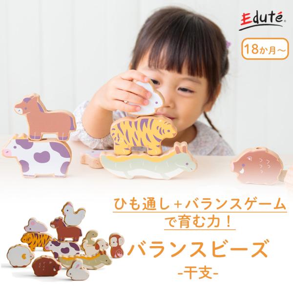 4/5はP+9%還元! 木製 おもちゃ 知育玩具 積み木 紐通し バランスゲーム 出産祝い 誕生日プレゼント 赤ちゃん 1歳 干支 バランスビーズ edute エデュテ