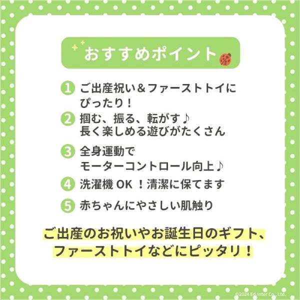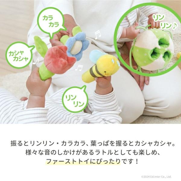 ご出産祝いやファーストトイにおすすめ!掴む、振る、転がす!長く楽しめる遊びがたくさん♪<br />