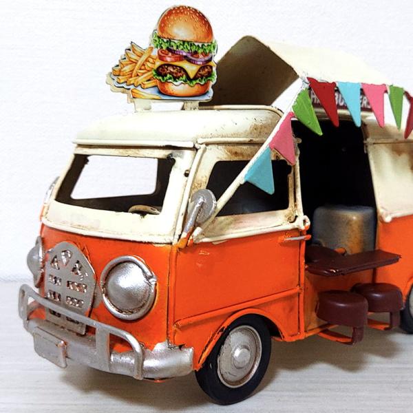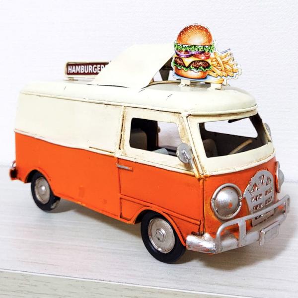 ビンテージカー かわいい フードカー ハンバーガー ノスタルジックデコ オレンジ レトロ 車 おしゃれ 鉄 インテリア 置物 HAMBURGER