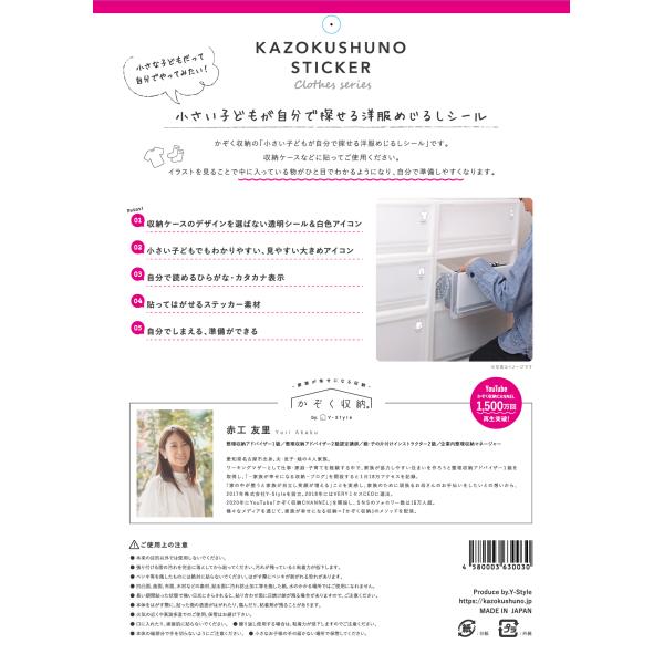かぞく収納の「小さい子どもが自分で探せる洋服めじるしシール」です。