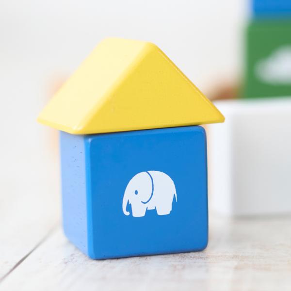 イラストが描かれた6つのつみきは、振ると「カラカラ」と優しい音が響き好奇心を刺激します。