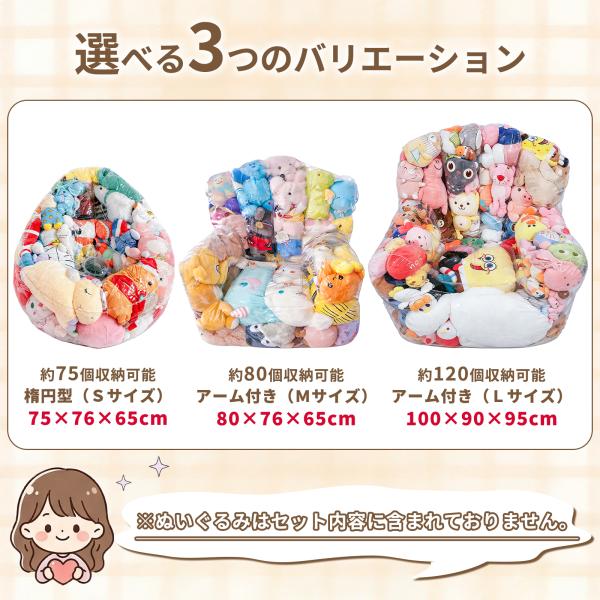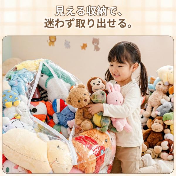 ぬいぐるみをたっぷり収納できる大容量サイズ