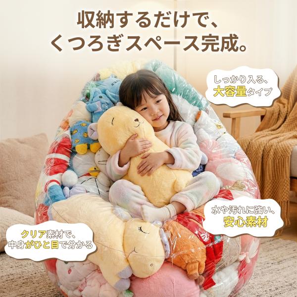 ぬいぐるみ収納 ビーンバッグ ソファー キッズ 子供用 椅子 ソファ ローソファー 透明 おもちゃ 収納チェア ローソファ フロアソファー 防水 防塵 防湿 防カビ