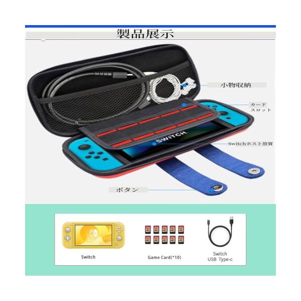 ・超群的收?能力Switch 専用保護ケースです。このスイッチ ライトバッグは超小型設計ですが、Switch 本体、10個のゲームカード、イヤホーン、ケーブルと他の小物類を収納できます。
