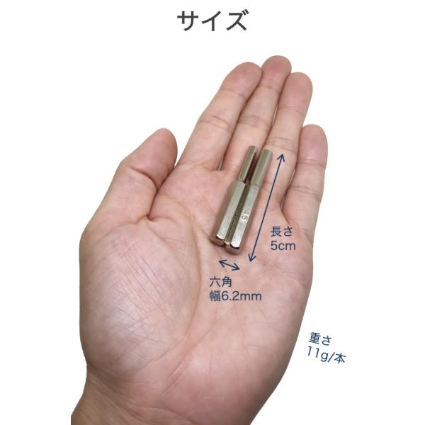 サイズ:[ビット全体]長さ5cm、[六角部] 幅6.2mm